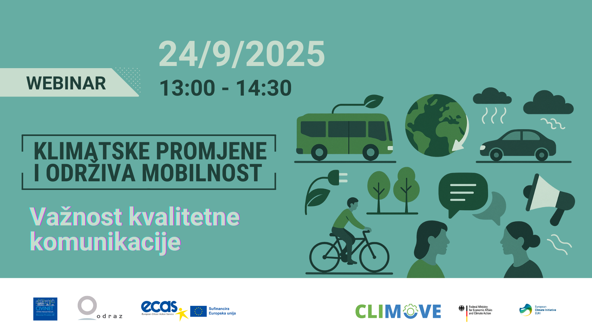 Sa zastarjelim pristupima ne možemo riješiti suvremene prometne izazove – vrijeme je za promjenu paradigme! Pridružite nam se u srijedu 8. 10. 2025. od 13:00 - 14:30 i saznajte kako promet planirati pametnije, pravednije i učinkovitije. Webinar organizira Urbanistički institut Republike Slovenije u suradnji s mrežom CIVINET Slovenija-Hrvatska-JIE u sklopu ciklusa CIVINET-ovih webinara "Jesenski razgovori o budućnosti mobilnosti.". Gosti predavači su dr. Aljaž Plevnik i dr. Mojca Balant.